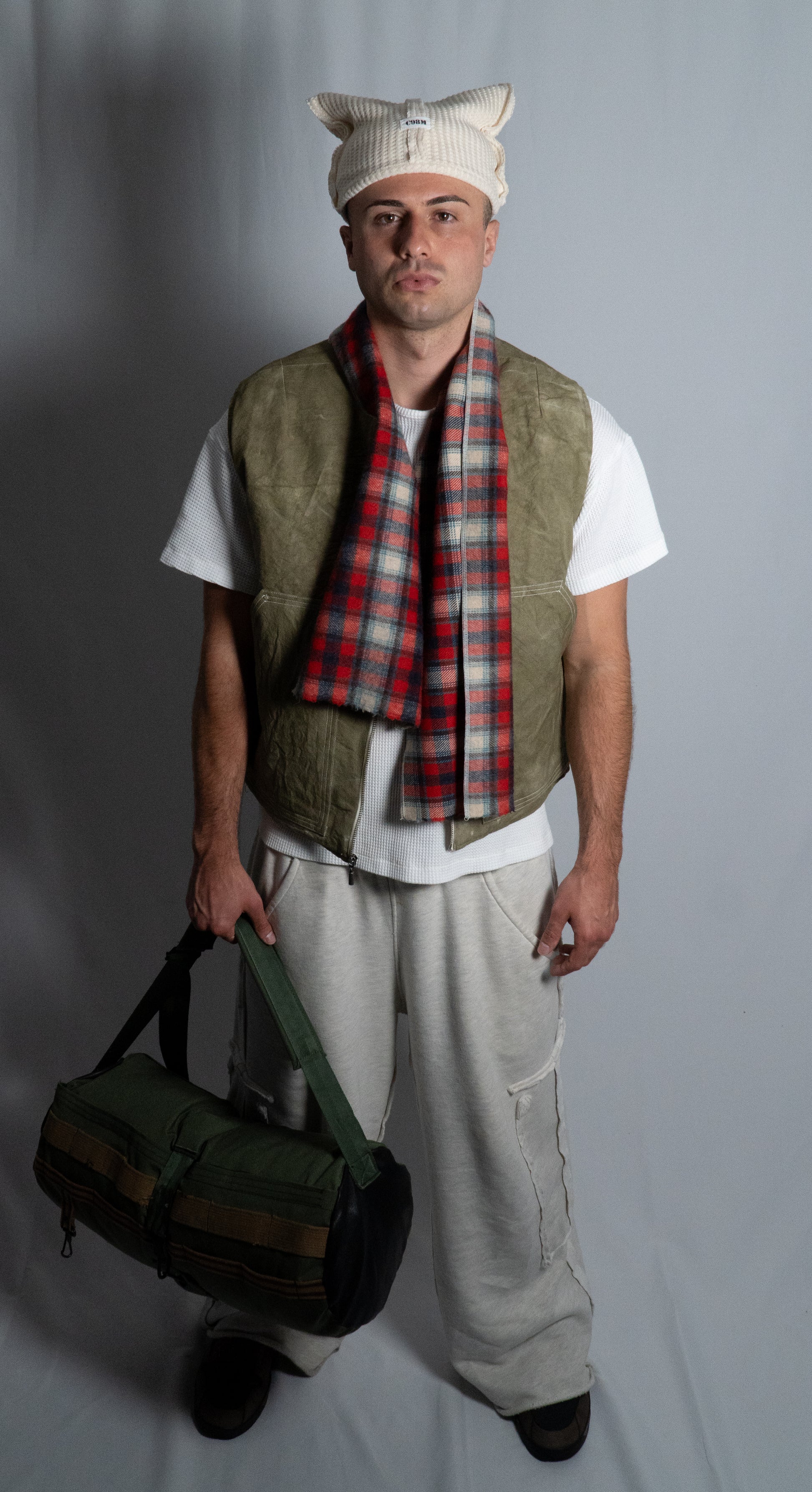 Plaid scarf made of a soft mohair blend with small fringed ends, made from carefully selected material known for its soft and hairy fibers. Detailed with an C98M logo.